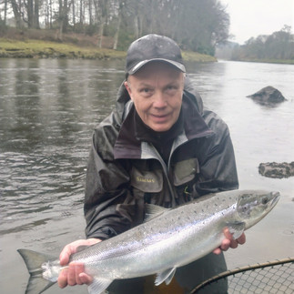 Åke fra Sverige var tilbake i Dee etter noen års pause. Åke slo til med flott laks etter kun noen timers fiske. Det var utrolig hyggelig og vi gratulerer Åke med en 12 P. laks som hadde noen få lus på hodet og dermed var ganske ny på elven. Det er jo en av grunnene til at vi besøker Skottland på våren. Vi jakter disse flotte blanke laksene som kommer tidlig og som er så vakre og spreke. Synd vi ikke fikk tatt flere laksebilder, men slik er det når en er alene og skal lande fisk, ikke alltid lett å ta bra bilder når fisken skal settes raskt tilbake i elven, vi lever bra med det. Opplevelsen er med uansett.